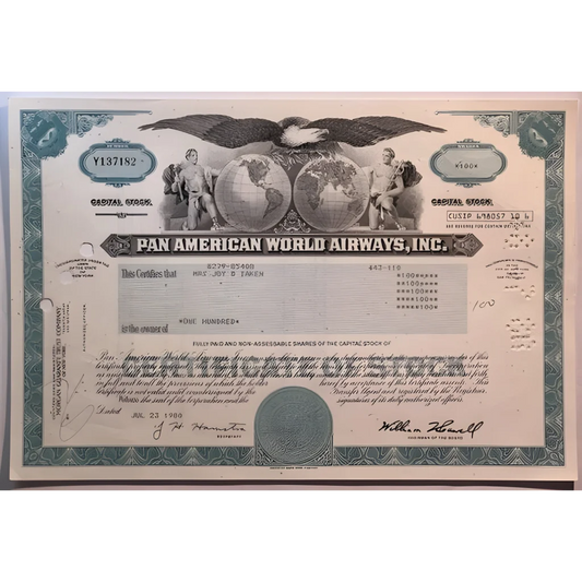 Printed on heavy bond paper designed to endure handling and time, these certificates have retained their visual presence for decades. Today, they are appreciated not only as financial artifacts, but also as tangible pieces of American industrial, corporate, and economic history.