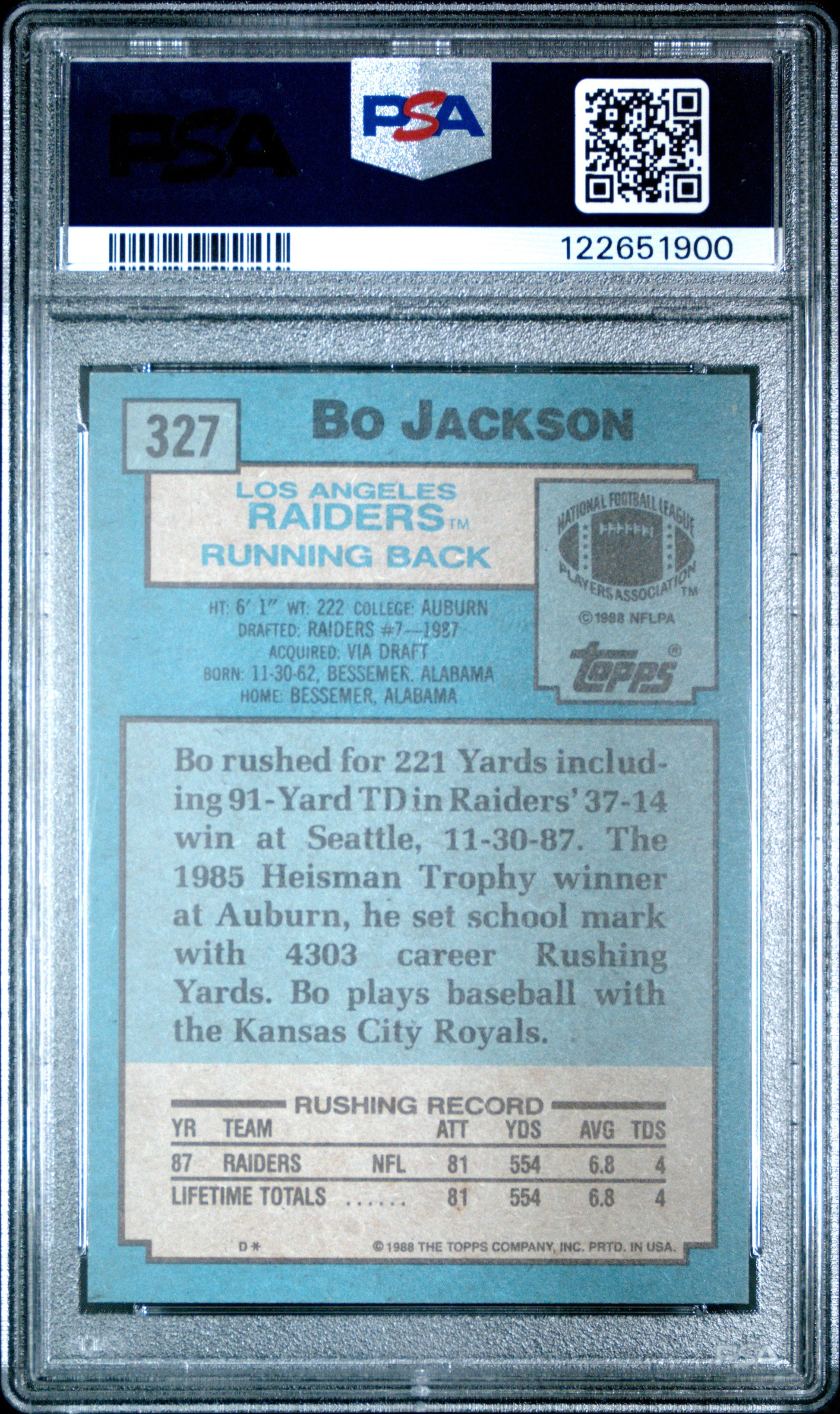 Graded 1988 Topps Bo Jackson #327 Rookie RC Football Card PSA 8 Near Mint