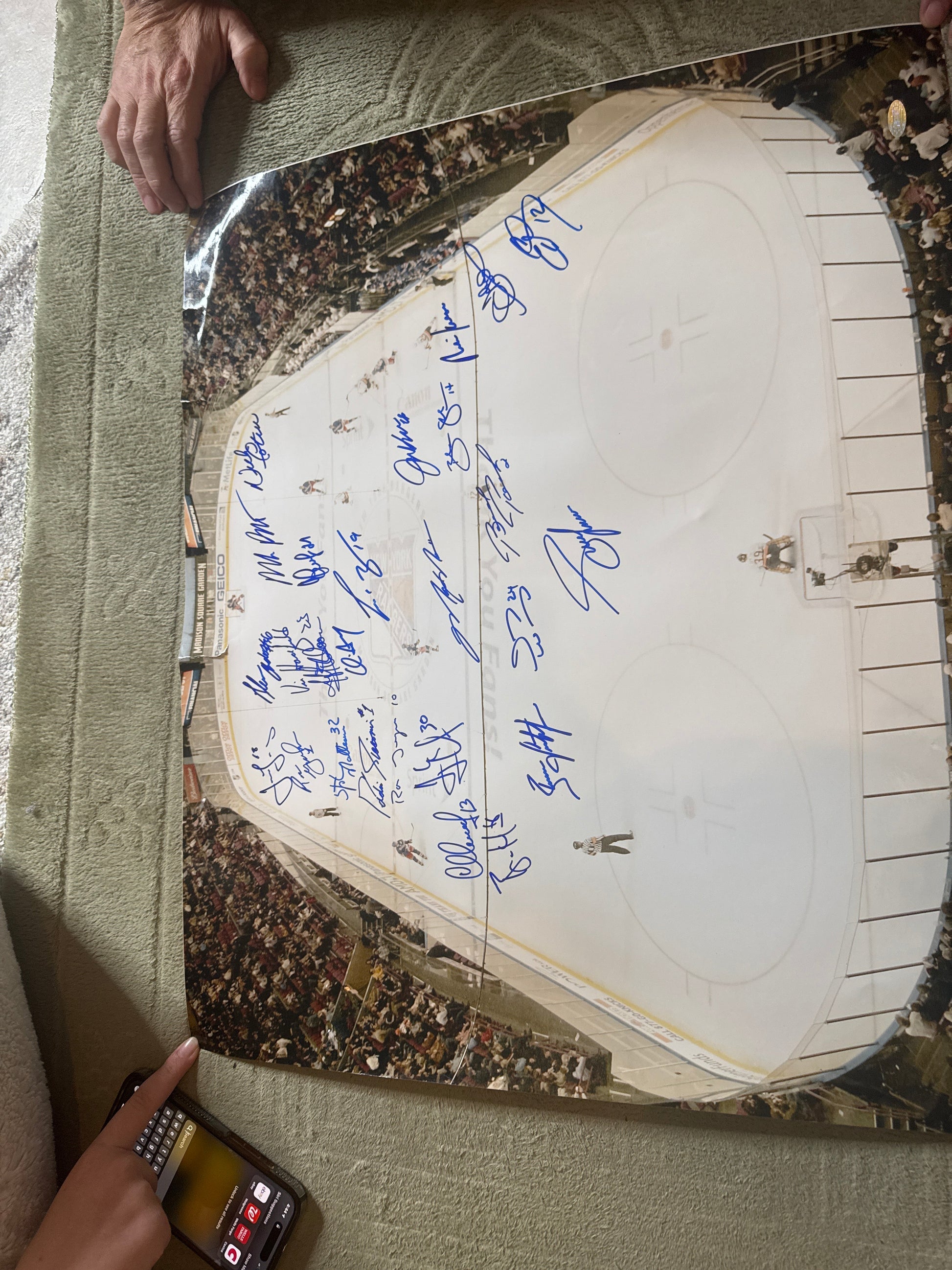 Photo measures 20" x 24" in size and has been hand-signed by (26) including Jaromir Jagr, Glen Anderson, Mark Messier, Brian Leetch, Brendan Shanahan, Henrik Lundqvist, Mike Richter, Brad Park, Sergei Zubov, Eddie Giacomin, Stephane Matteau, Adam Graves, Vic Hadfield, and (13) more.