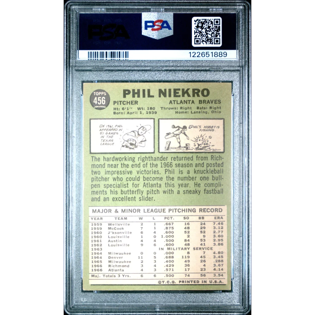 Graded 1967 Topps Phil Niekro #456 Baseball Card PSA 4 Very Good